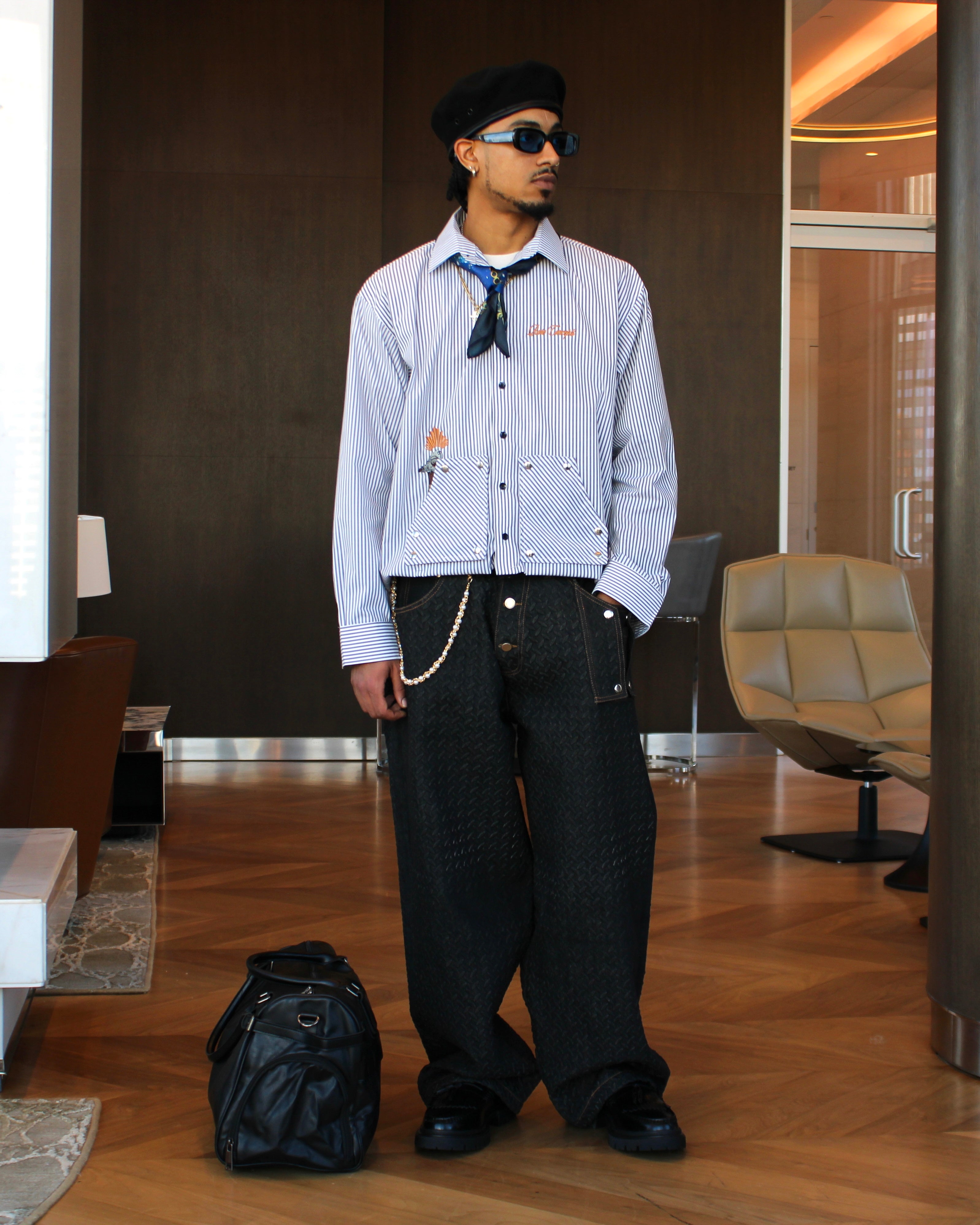 MODEL, EMMANUEL CANO-GARROWAY IN OUR BUTTON-UP AND DENIM